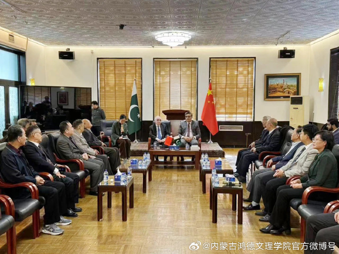 11月28日,受巴基斯坦駐華大使館邀請,內(nèi)蒙古鴻德文理學(xué)院院長周玉樹、外語系主任史麗珍、教務(wù)處副處長周川、外事辦教師鄧森一行4人,到巴基斯坦駐華大使館拜會新任駐華大使哈什米,并受到前大使馬蘇德?哈立德和新任大使哈什米的單獨會見。