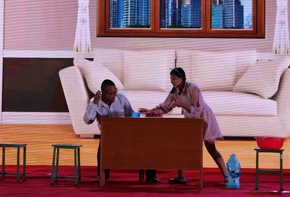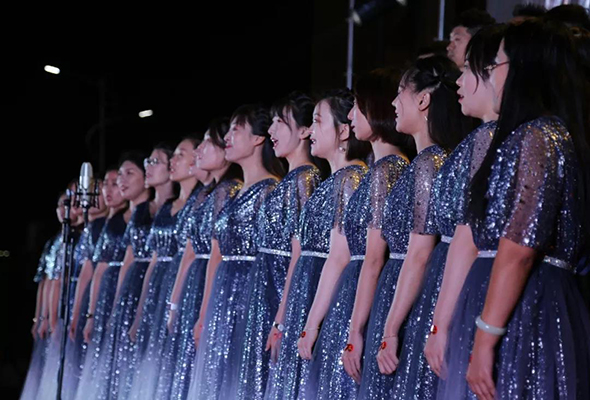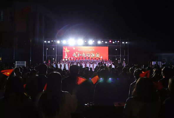 整場晚會分為崢嶸七十載、逐夢綻芳華、建功新時代、共筑中國夢四個篇章。師生們用真誠的表演,將合唱、舞蹈、相聲、詩朗誦等形式結合在一起,華美絢爛的燈光,精彩紛呈的表演,接連不斷的掌聲,共同組成了盛大的華章,表達對偉大祖國的美好祝福和真誠禮贊。