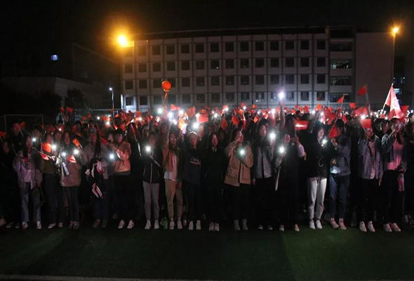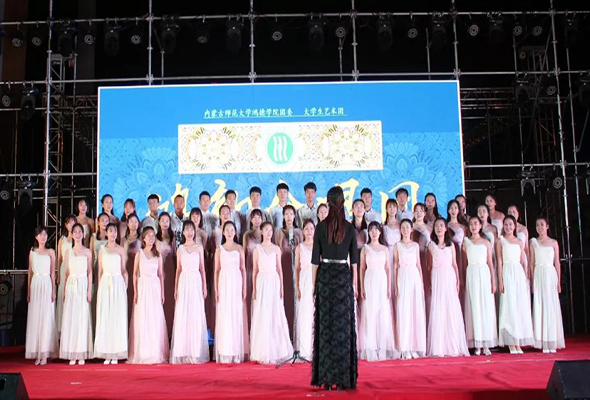 “我和我的祖國一刻也不能分割,無論我走到哪里都流出一首贊歌,我歌唱每一座高山,我歌唱每一條河,裊裊炊煙小小村落路上一道轍……”9月27日晚,這首膾炙人口的歌曲響徹內蒙古師范大學鴻德學院的校園,三千多名師生齊聲高唱,為祖國70華誕送上祝福。