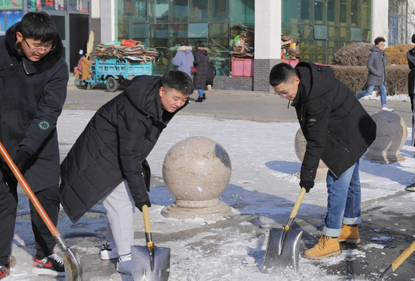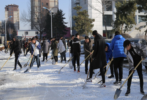 因上周末的降雪,鴻德學院校園主干道遍布積雪,為確保校園道路暢通和師生出行安全,12月3日中午,院領導周玉樹、王新剛和周偉帶領廣大師生開展了一場大規模的鏟雪活動。