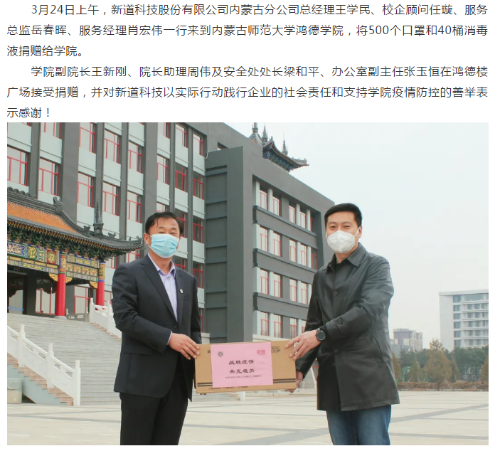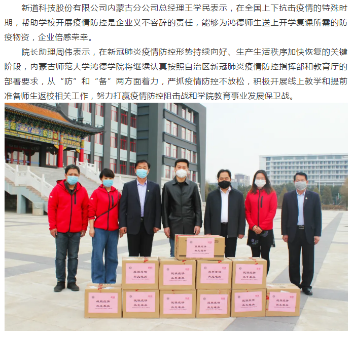 新道科技向內師大鴻德學院捐贈防疫物資
