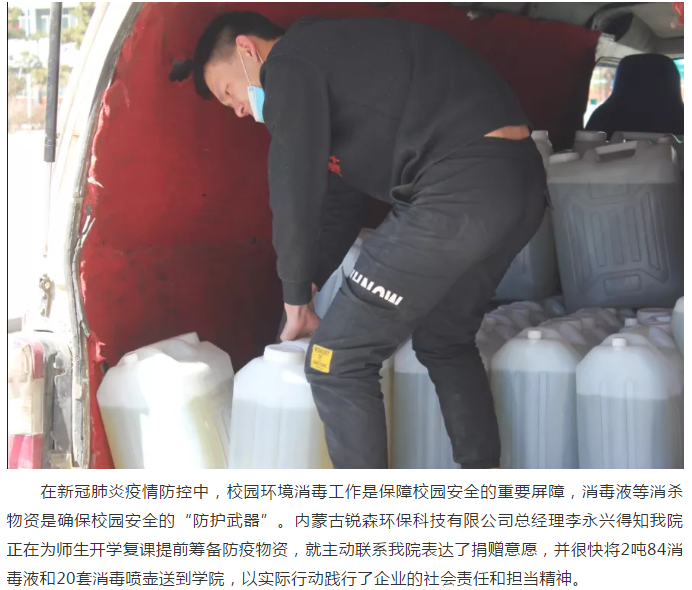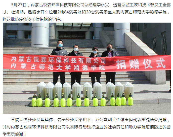 內(nèi)蒙古銳森環(huán)保科技有限公司向內(nèi)師大鴻德學院捐贈防疫物資