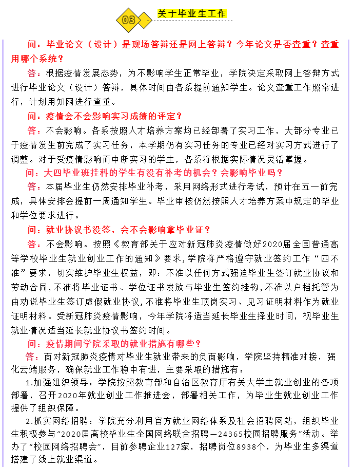 近日有部分師生通過網絡、電話等方式詢問開學時間、學院轉設、線上教學、畢業就業等問題,學院