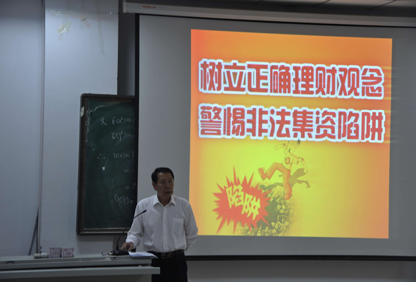 6月7日下午,由安全處、辦公室、團委主辦的“樹立正確理財觀念,警惕非法集資陷阱”宣講會在圖書館公共教室三舉行,安全處梁和平處長向同學們詳細講解了非法集資的危害,以及如何樹立正確的理財觀念等內容。