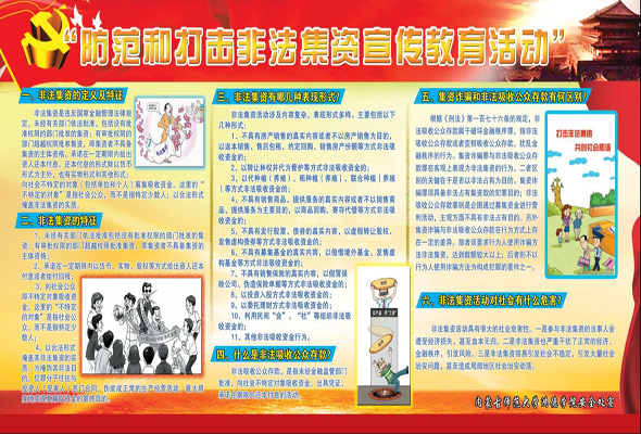 下午5點,安全處及團委在校園內張貼相關海報并懸掛條幅,組織同學們認真學習相關內容,提高防范意識,遠離非法集資。