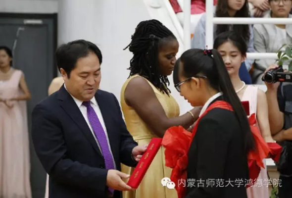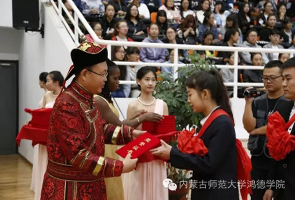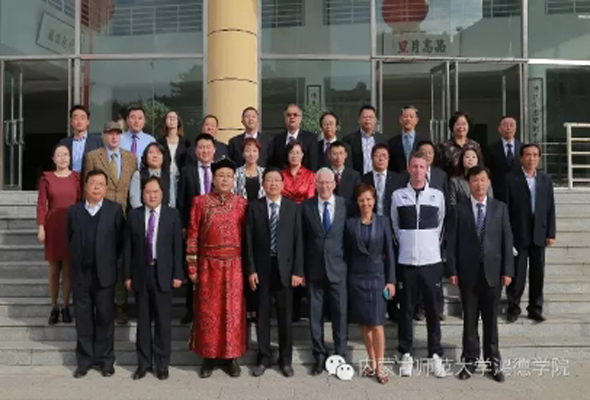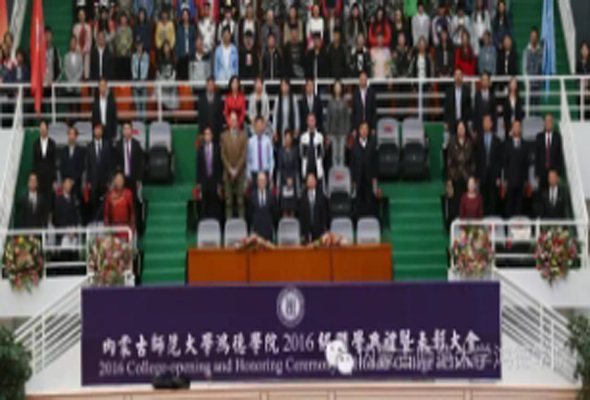 9月20日上午,內蒙古師范大學鴻德學院2016級新生開學典禮暨表彰大會隆重舉行。英國特蘭米爾流浪者足球俱樂部主席馬克·帕里奧斯先生攜夫人妮古·拉女士應邀出席。
