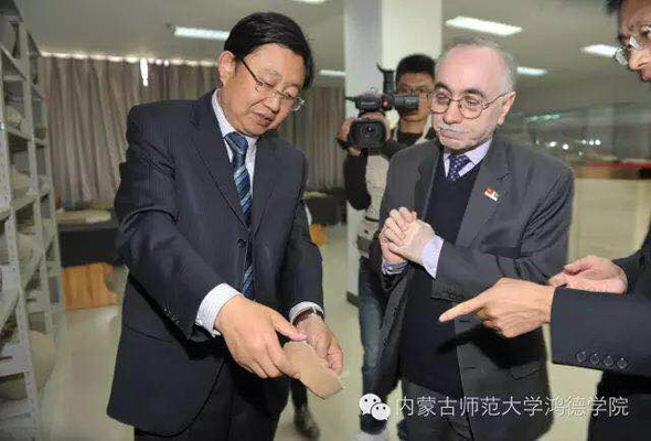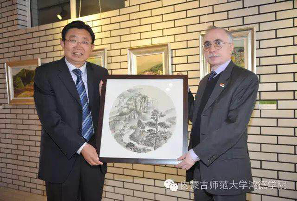 座談會結束后,馬蘇德·哈立德大使在周玉樹院長的陪同下來到巴基斯坦研究中心、中國北方巖畫研究所、藝術展廳、校史館等場館進行了參觀,馬蘇德·哈立德大使還將藝術系學生的兩幅寫生畫作進行了收藏,并對我院學生的藝術創作給予了高度的評價。