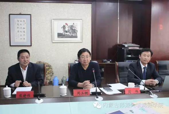 會議中,我院院長助理周偉結合幻燈片向來賓詳細介紹了鴻德學院的校園建設情況,通過對我院的校園文化、系科建設、學生就業率、獎項成果等方面的講解,讓來賓對鴻德學院發展建設歷程有了具體了解。周助理表示,我院在規劃建設過程中一直堅持“建設布局延邊規劃,分類實施,因地制宜”、“建筑設計突出個性,講求內涵,彰顯時代感”、“建筑與文化有機結合”、“追求綠色生態,體現以人為本”四大發展原則。