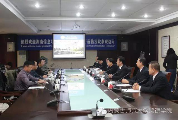 會上,湖南信息學院副校長鄢敦望首先向我院領導介紹了湖南信息學院的校史發展歷程以及建設規模與部門分工。隨后,周玉樹院長向鄢校長一行詳細介紹了我院的辦學理念和基本的發展概況,并講述了我院發展歷史和系科建設歷程。