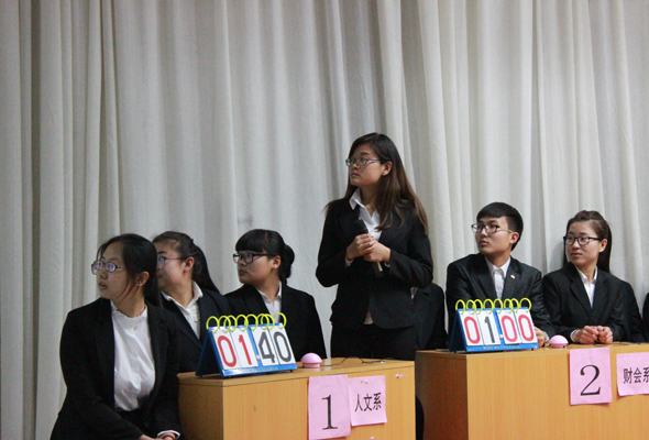 此次競賽共包括必答題、搶答題、風(fēng)險題和附加題四個環(huán)節(jié),主持人首先向選手們介紹參賽規(guī)則和評分制度。比賽開始后,各系的選手代表們很快進入狀態(tài),沉著冷靜、分工明確、思路清晰、反應(yīng)迅速,顯示了豐富的知識儲備量及快速的應(yīng)變能力。經(jīng)過四個環(huán)節(jié)的精彩對決,最終管理系摘得第一名的桂冠,外語系和財會系分獲第二、第三名,人文系、藝術(shù)系和影視藝術(shù)分院獲得優(yōu)秀獎。