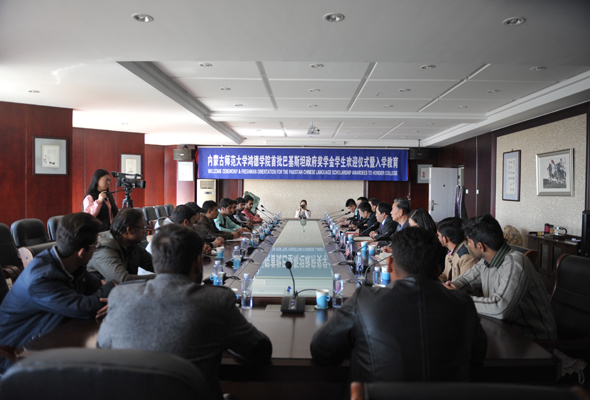 4月24日下午,內蒙古師范大學鴻德學院首批巴基斯坦政府獎學金留學生歡迎儀式暨入學教育在崇德樓第一會議室舉行,巴基斯坦駐華大使館教育參贊Navid出席儀式,我院王新剛副院長在會上致歡迎詞。會議由外事辦史麗珍主任主持,巴基斯坦研究中心主任唐俊擔任翻譯。