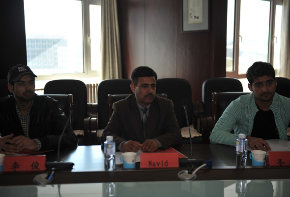 王新剛副院長首先致辭,Navid參贊的到來表示熱烈的歡迎,對11名留學生表示親切的問候。王院長講到,中巴友誼根深葉茂,中國和巴基斯坦關系是好兄弟、好伙伴、好鄰居。隨著中巴兩國文化教育的深入交流,兩國間的貿易合作也日益頻繁,此次11名巴基斯坦政府獎學金留學生的到來也將對中巴“一帶一路”的建設起到重大的貢獻。對于留學生,王院長也提出了自己的期望:中巴兩國在今后的合作不僅限于經濟和文化等方面,還將在軍事及生產制造上有更大范圍的合作,所以大家要學好漢語,做好中巴友好合作的橋梁和紐帶;在中國的學習中,博采眾長,取長補短,盡快融入到中國的文化和習慣之中,在鴻德學院兩年的學習中學有所成。