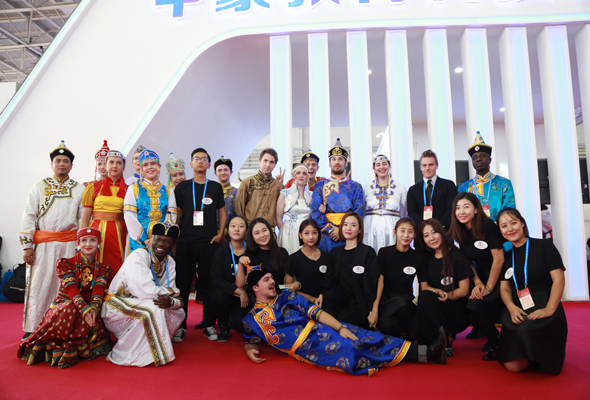 “內蒙古,這片美麗的熱土!我們的第二故鄉,幾年來我們感受著這里的快速發展,這里有我們的夢想和朋友。內蒙古人熱情好客,給了我們家的溫暖!‘民心相通,文化為媒’,鴻德學院讓我們體驗到中國文化,也讓我們學習到中國文化!看看我的同事們,他們身著蒙古族傳統服飾,款款走來……”Mark用中文向大家介紹了我院的第一個表演,由12名來自美國、英國、愛爾蘭等國家的小倫敦英語學校留學生組成的蒙古族服飾表演吸引了大眾眼球,服裝是個載體,承載的是國家文化和歷史傳統,我院留學生向大家展示了自己對民族服飾的熱愛。