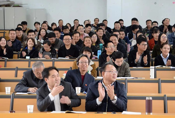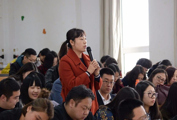 抽查考核階段由鴻德學院黨委副書記、院長周玉樹主持,對參會人員進行了黨的十九大精神及中國特色社會主義體系等相關知識點的隨機提問,要求按照給定題目闡述自身見解。被提問的老師們積極主動回答問題,并運用平時學習積累的政治理論,結合專業知識認真作答,尤其是鴻德學院教務處思政教師薛丹、學生處生活管理科副科長郭江、總務處綜合科副科長張騫等同志的講解,博得了參會人員熱烈的掌聲。