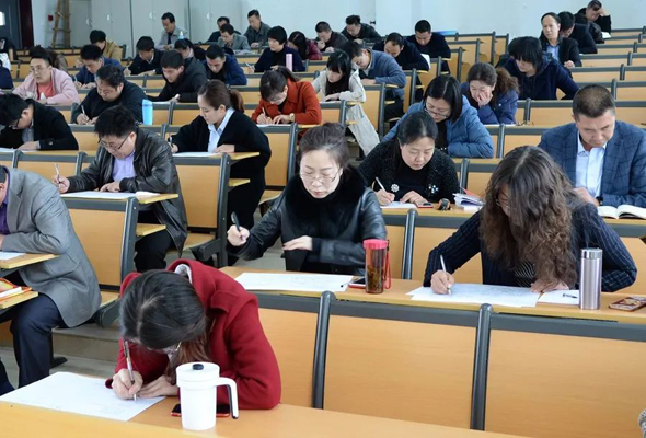筆試試題由鴻德學院黨委書記盧鳳龍親自出題,考試內容主要為黨的十九大精神及中國特色社會主義體系等相關知識點。參考人員在考試過程中聚精會神、專心致志,深思熟慮后下筆作答,全部在50分鐘內完成了作答并交卷。試卷由組織人事處收回進行批閱,成績將在校內進行公布。