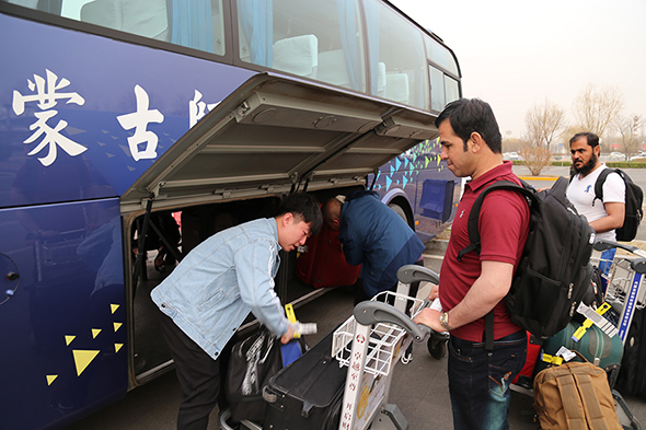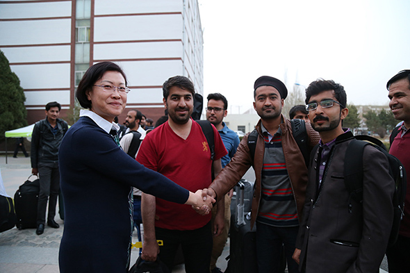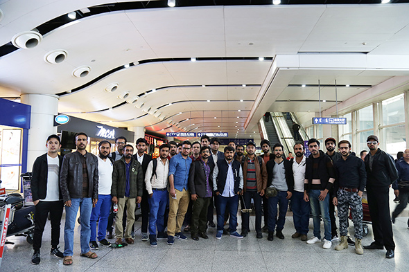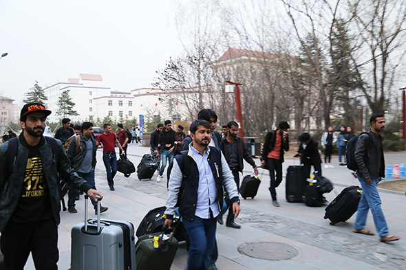 此行23名留學生4月7日便從巴基斯坦俾路支省首府奎塔市乘坐航班出發,轉輾巴基斯坦卡拉奇市直飛我國首都北京,4月9日晚才飛抵呼和浩特市。鴻德學院派出外事辦干事王志剛親自前往北京機場接機,并將留學生們安全護送回學校。留學生們走下飛機,雙腳踏上了呼和浩特的土地,對異國他鄉的一切都充滿了好奇,不時地拿出手機開心的與朋友們拍照留念,熱烈地討論著眼前新鮮的事物。在乘坐大巴車返校途中,留學生們迫不及待的向迎接他們的老師和學生們詢問了解鴻德學院的情況。