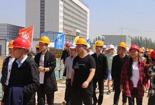 5月23日,一個像往常一樣的星期三下午,管理系2016級土木工程二班的同學接到了班主任孔凡廣老師的通知,領取了安全護具并接受過簡單的安全培訓后,52名同學在崇德樓前列隊整裝待發,期待著他們即將迎來的一堂別開生面的室外實踐課。