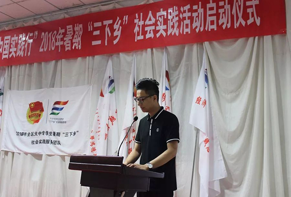 本網訊(記者/杜虹麗 攝影/趙怡童)7月12日中午,我院“美麗中國行實踐”2018年暑期“三下鄉”社會實踐活動啟動儀式于圖書館5樓報告廳舉行。學院黨委書記盧鳳龍、各系(分院)學管及志愿者代表共計200余人參加了儀式。由團委副書記馬明亮主持。