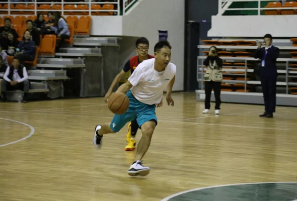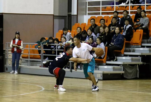 教職工代表隊遠程傳球配合,近距離防守,默契的配合結合精湛的球技,率先拿下一分;管理系代表隊靈活走位,借速度優勢不斷發起進攻,比分不斷上升。代表隊雙方進退有度,互有攻守,一次次漂亮的進攻和防守將比賽帶入高潮,觀眾掌聲不斷,紛紛為其支持的代表隊吶喊助威,最終,教職工隊贏得了勝利。本次教職工代表隊和管理系代表隊的精彩比賽成功引燃了第五屆籃球聯賽的激情。