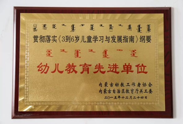 11月15日,內蒙古自治區教育廳關工委和內蒙古幼教工作者協會共同為我院學前教育專業頒發了“內蒙古自治區幼兒教育先進單位”獎。