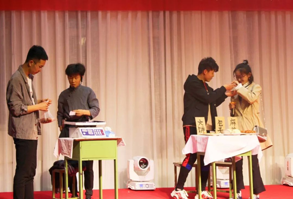 《和和氣氣雜貨店》,開開心心共生活。外語系同學以繪聲繪色的表演,為我們展現大學生自主創業中遇到的問題。同時也告訴我們為他人著想方能塑造良好的生活環境,“唯寬可以容人,唯厚可以載物”的道理。