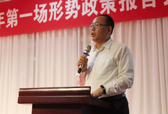 為弘揚五四運動精神,激勵青年學(xué)子奮發(fā)圖強,擔(dān)負(fù)起實現(xiàn)中華民族偉大復(fù)興的中國夢大任, 4月25日下午,我院邀請自治區(qū)人民政府特約研究員、二級教授楊一江老師在圖書館五樓報告廳開展“建設(shè)亮麗內(nèi)蒙古 共圓偉大中國夢”形勢政策報告會。本次報告會是全區(qū)高校百場形勢政策報告會的重要組成部分。我院黨委書記盧鳳龍主持會議,教職工黨員、學(xué)生黨員等500余名師生聆聽了講座。
