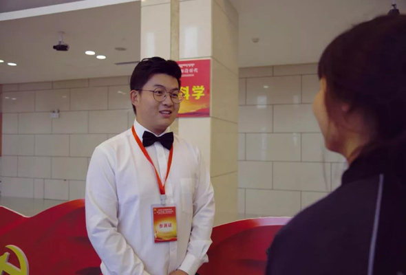 人文系公共事業(yè)管理二班的李昊是合唱團(tuán)的副團(tuán)長,更是大家口中的開心果。 他在2017年加入這個(gè)溫馨的大家庭,參加過不少演出,但這次專業(yè)的節(jié)目編排,嚴(yán)謹(jǐn)?shù)难莩隽鞒套屗辛藦?qiáng)烈的“使命感 ”,他也很自豪能代表學(xué)院參加演出。他提到,正是邵毅老師專業(yè)和悉心的指導(dǎo),合唱團(tuán)才能有今天輝煌的成績。他希望合唱團(tuán)所有成員不忘初心,繼續(xù)歌唱,也希望自己努力成長為有理想有擔(dān)當(dāng)?shù)纳鐣髁x建設(shè)者和接班人。