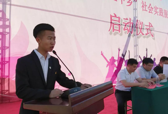 在啟動儀式上,團委書記王佳麗向各隊伍提出“三下鄉”活動的相關要求,人文系團總支書記王星卜代表指導老師作了發言,17級漢語言文學2班的劉暢同學作為學生代表做出實踐承諾。最后,黨委書記盧鳳龍為院團委和各系團總支社會實踐隊伍授旗,并鼓勵同學們在實踐中成才,在奉獻中進步,用實際行動踐行社會主義核心價值觀,做有理想、有責任、有擔當的新時代青年。