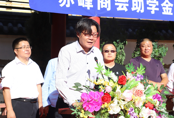 學(xué)院院長周玉樹首先代表學(xué)院向赤峰商會和出資人張學(xué)春表示感謝,然后給同學(xué)們講了愛心企業(yè)家張學(xué)春的創(chuàng)業(yè)經(jīng)歷,他希望各位同學(xué)能夠努力學(xué)習(xí),并以張學(xué)春先生為榜樣,勇?lián)鐣?zé)任。