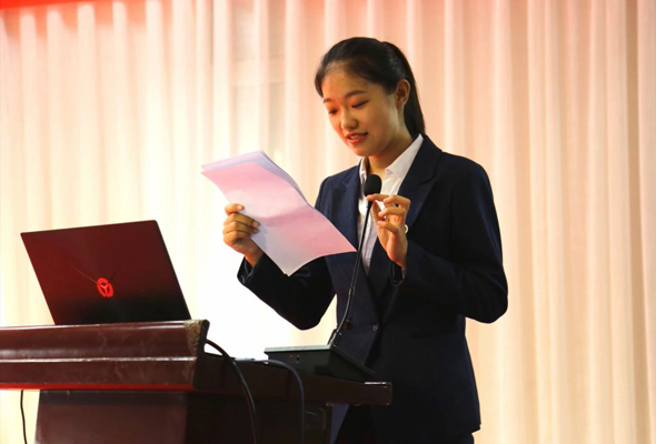 影視藝術(shù)系學(xué)生代表呂玲燕做報告