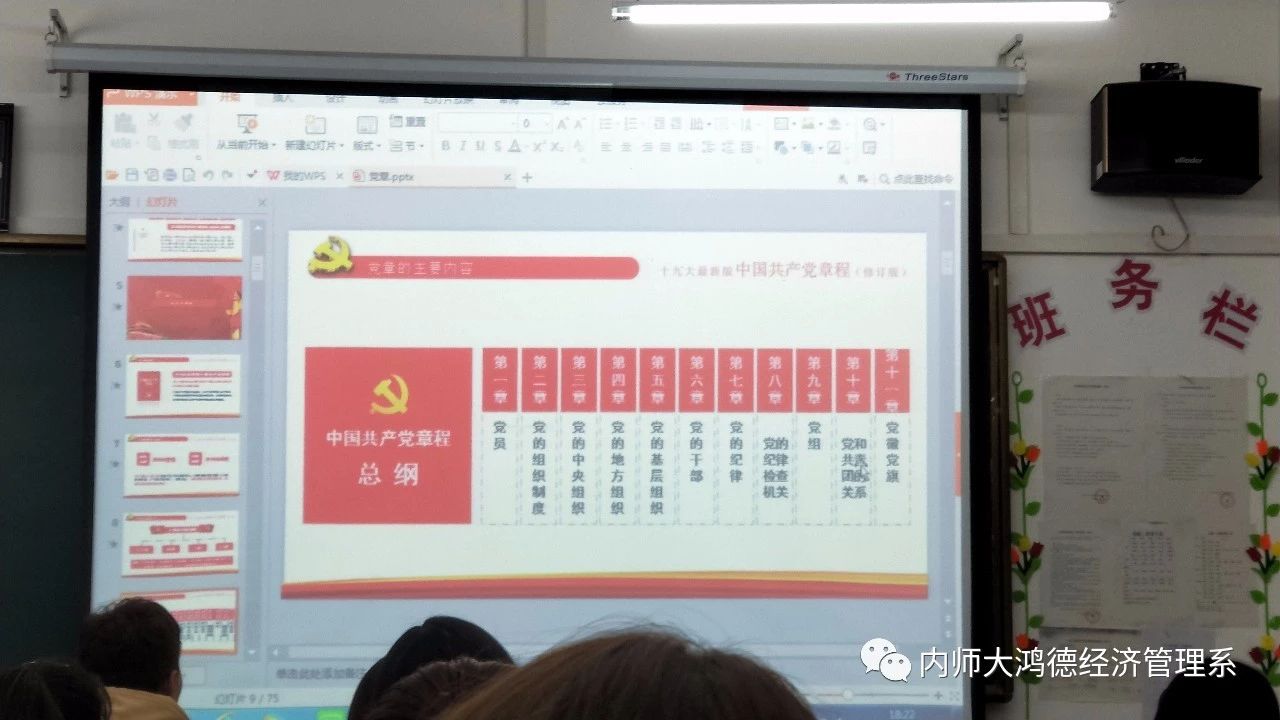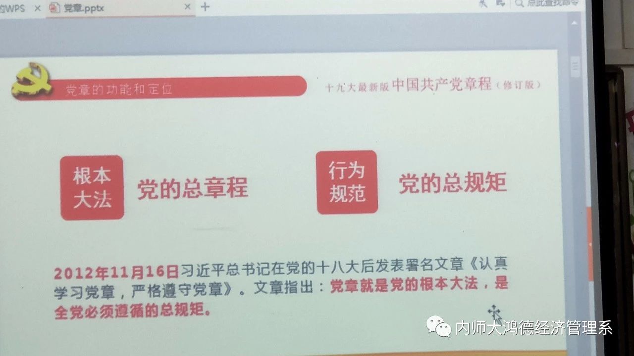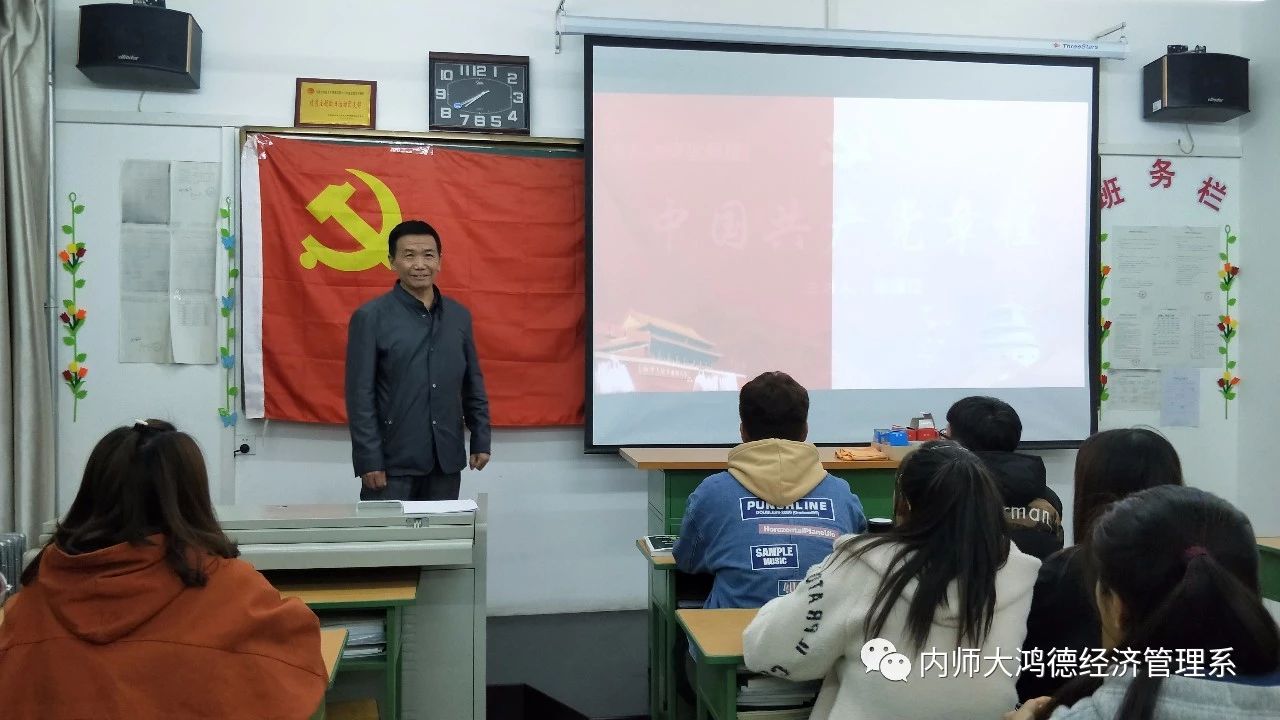 為了提高入黨積極分子對(duì)黨的理解程度和理論知識(shí)水平,端正入黨動(dòng)機(jī),正確的認(rèn)識(shí)黨的性質(zhì),深入了解中國(guó)共產(chǎn)黨的初心與使命,我系繼續(xù)于天健樓307教室開展了以“中國(guó)共產(chǎn)黨章程”為主題的第十九期入黨積極分子黨課培訓(xùn),由經(jīng)濟(jì)管理系黨支部書記張茂江同志主講。