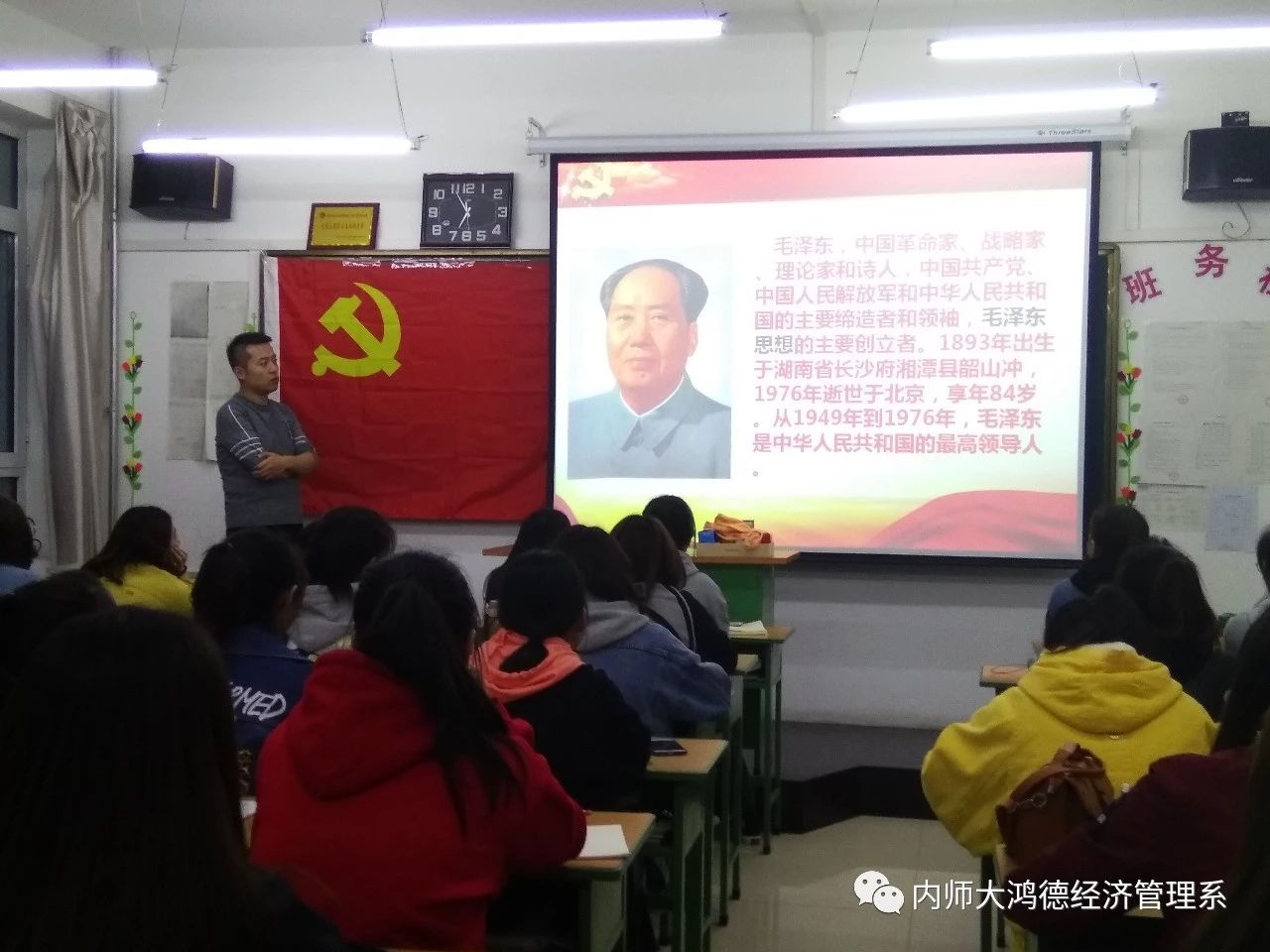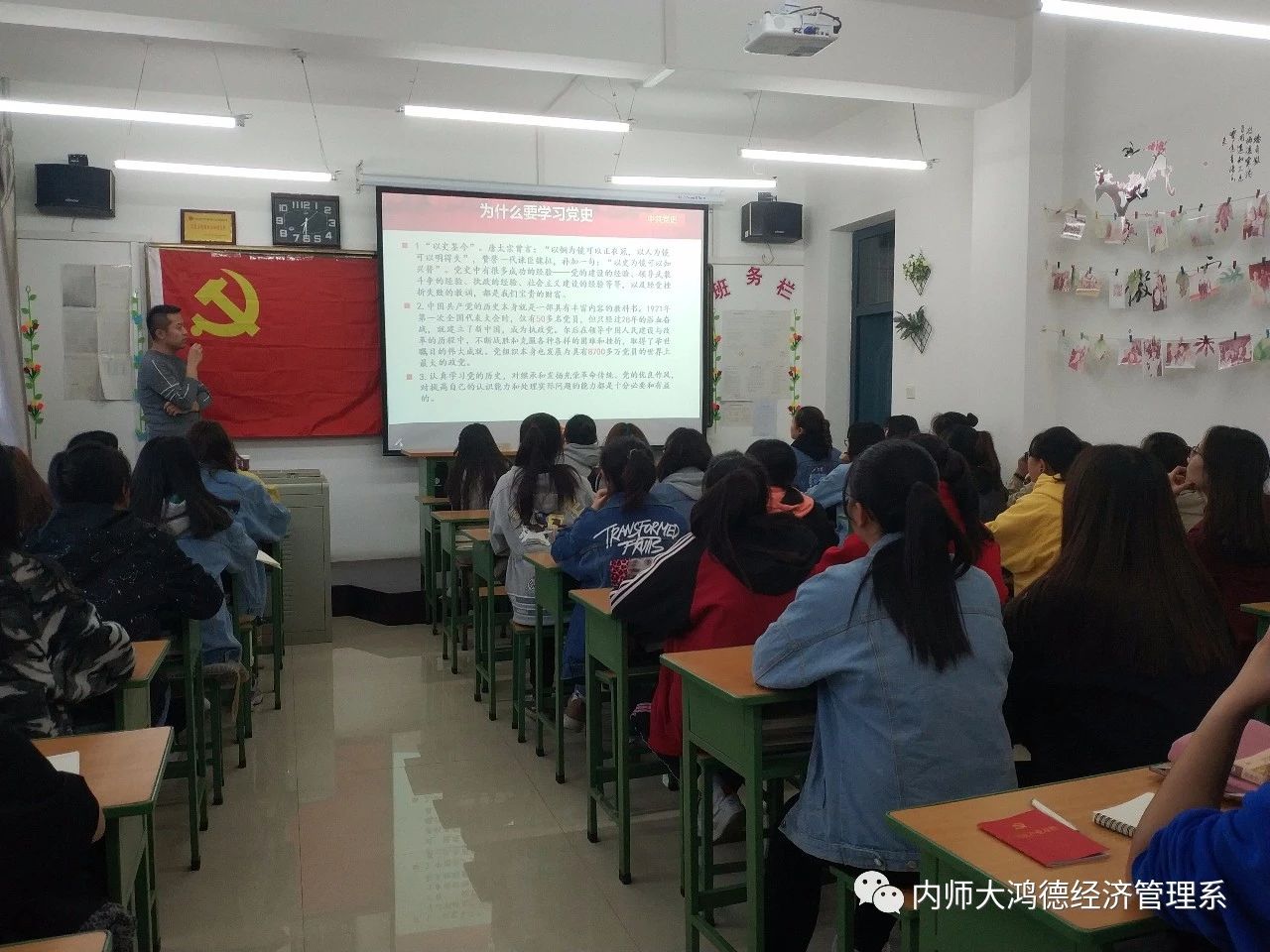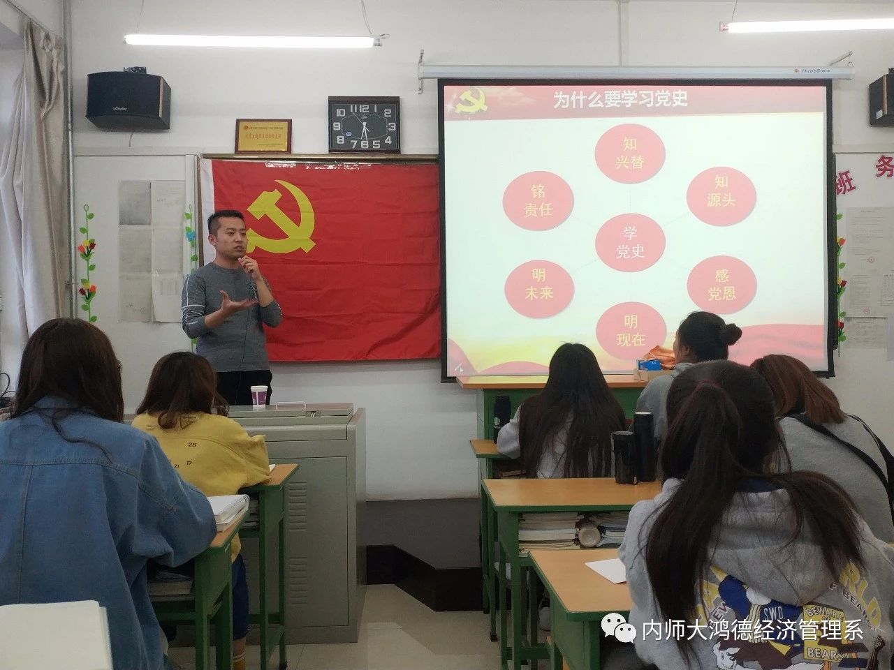 為了進一步做好黨員發展工作、提高黨性修養、端正入黨動機、堅定入黨決心、培養合格黨員,2019年第十九期入黨積極分子培訓班以“學黨史,知黨情,跟黨走”為主題的黨課培訓在內蒙古師范大學鴻德學院經濟管理系天健樓307開展。此次入黨積極分子培訓班的主講人是經濟管理系黨支部宣傳委員劉昱靖老師。