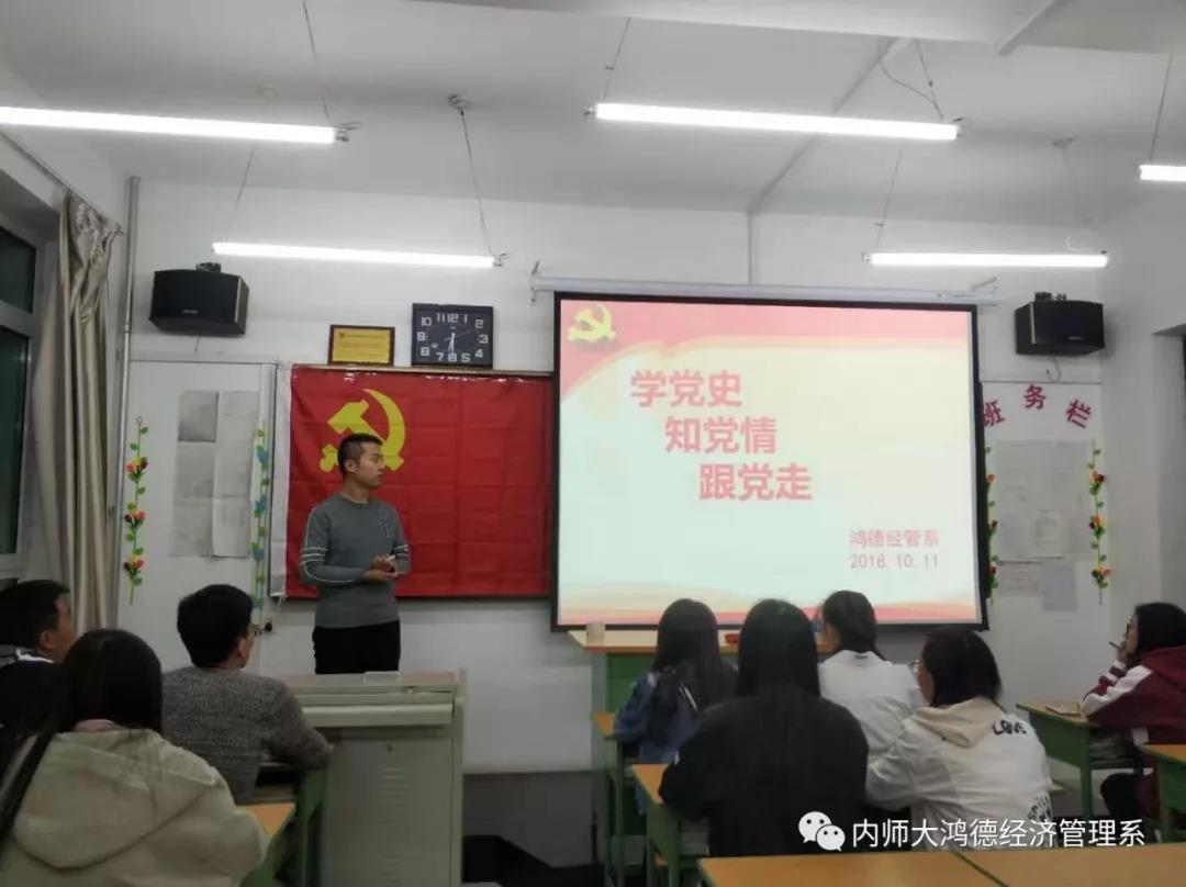 使命呼喚擔當、使命呼喚未來、使命引領發展,為了進一步做好黨員發展工作、提高黨性修養、端正入黨動機、堅定入黨決心、堅定共產主義的信念、深入學習領會黨的十九大及“兩會”精神,適應新形勢下黨建發展的新要求,培養合格黨員。內蒙古師范大學鴻德學院經濟管理系在天健樓307開展2018年第二期入黨積極分子培訓班。此次入黨積極分子培訓班的主講人是經濟管理系黨支部宣傳委員劉昱靖老師。